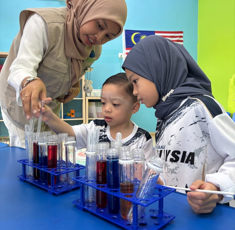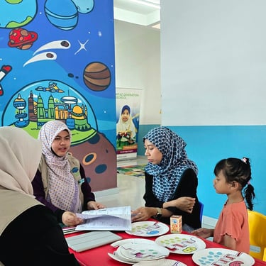 Children got to try out mini games inspired by our STEAM and Islamic education curriculum. They tested their knowledge in the Solat Time Game, practised counting with Count & Match, and did a mini experiment in Guess the Colour! There were all kinds of kids—extroverted, shy, a little nervous—and each one brought their own special energy to the fun-filled day.